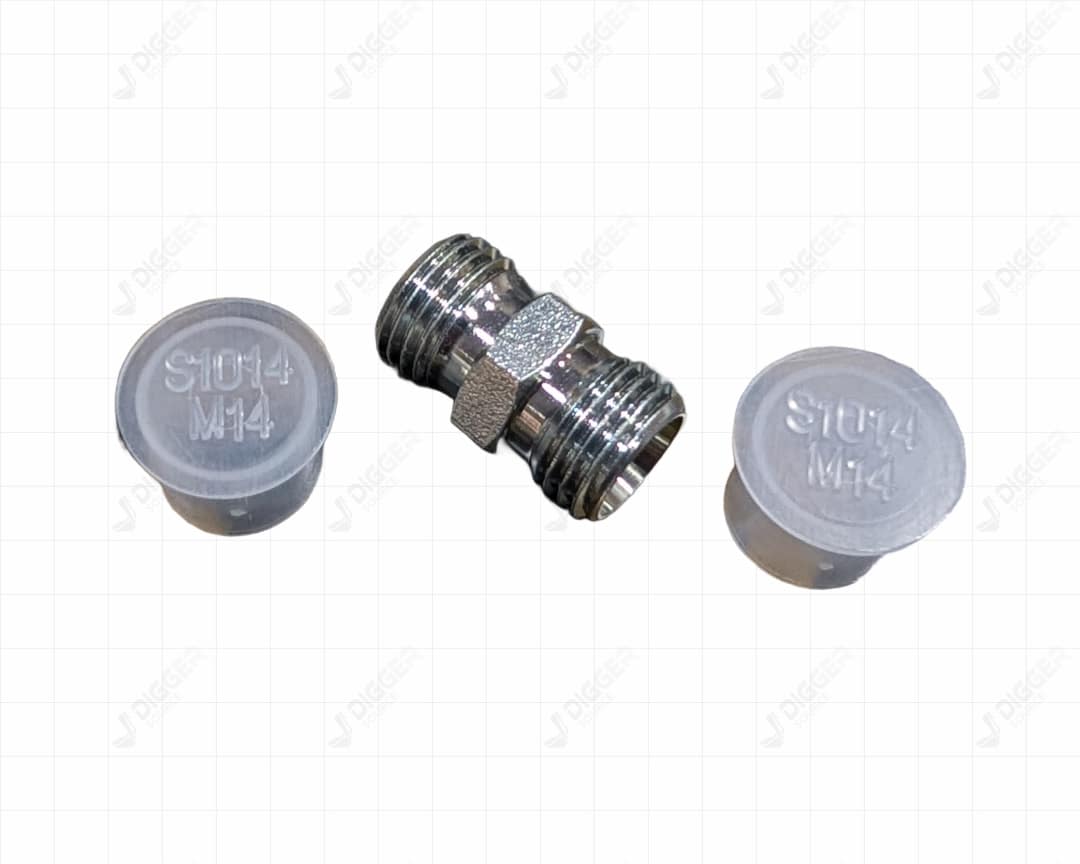 Durable adapter fitting with M14 hose connection on one end and M14 hose connection on the other. Ideal for secure, leak-free connections between hydraulic or pressure lines.